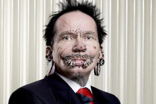 Almanya'da Dortmund isimli şehirde yaşayan Rolf Buchholz bence dünyanın en saçma ve en iğrenç rekoruna sahip. Vücudundaki küpe ve piercingsayısının toplamı tam 453. Vücuduna yaptığı bu işkence onu bu konuda dünya rekortmeni yaptı ve adı her yerde duyuldu. Rolf Buchholz'un ağzı ve dudaklarında 94, kaşlarında 25 ve burnunda 8 piercing var. Geriye kalan 316 pierceing ve küpe ise vücudunun her yerinde var. Umarım bu rekoru kırmak isteyen biri çıkmaz. :S
